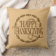 This holiday throw pillow is shown with a Happy Thanksgiving print.