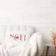 Das Holiday throw Kissen ist in Weiß und Rot mit einem Weihnachten, das heilig gedruckt ist, dargestellt. Passen Sie dieses Kissen an oder kaufen Sie, wie es ist.