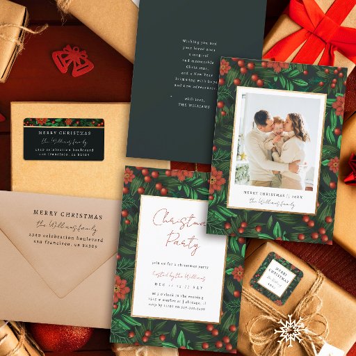 Holly Berries Foliage Weihnachtsfeiertage Rücksend Adressaufkleber
