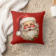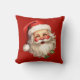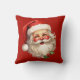 Kissen mit einer fröhlichen Illustration eines Vintagen Weihnachtsmannes mit roten, roten Wangen, mit seiner klassischen roten Weihnachtsmannmütze und seinem großen weißen Bären. Der heilige Geist dieses Designs wird durch einen Hauch von Heiligenschein unterstrichen.