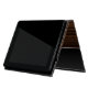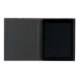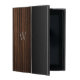 Schönes iPad Folio Gehäuse, mit Grafik eines braunen Holzkornaussehens, das in der Mitte des Gehäuses läuft. Ein schwarzes metallisches Aussehen, sowohl an den vorderen als auch an den hinteren Kanten, hat ein silbernes Tonband als Rahmen. Personalisieren Sie das Monogramm mit einem Buchstaben auf der Vorderseite, um Ihre Bedürfnisse zu Anzug. Gute Geschenkidee