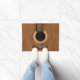 Hölzerne Akustikgitarre-rustikale Musik-Fußmatte. Eine warme Mahagonistahlschnur. Ein wunderbarer Eingang zu einem musikalischen Haushalt oder zu einem großen Housewarminggeschenk für Ihren LieblingsGitarristen, Musiker oder Musikfreund.