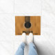Hölzerne Akustikgitarre-rustikale Musik-Fußmatte. Eine warme Mahagonistahlschnur und ein kundengerechter Text. Ein wunderbarer Eingang zu einem musikalischen Haushalt oder zu einem großen Housewarminggeschenk für Ihren LieblingsGitarristen, Musiker oder Musikfreund.