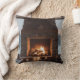 Holzfeuer in einem Kamin. Kissen