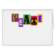 Helle mehrfarbige Blockschrift, die "FRIEDEN" auf FriedensT - Shirts, Knöpfe, Tassen, mousepads, Magneten und andere Einzelteile formulieren, die Weltfrieden fördern!