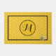 Die Türmatte weist ein gelb-weißes Wabenmuster auf. Es hat einen schwarzen Rand und einen Bereich in der Mitte für ein Monogramm. In der unteren rechten Ecke ist eine Hummel.