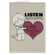 Der kleine Junge hält ein Stethoskop gegen ein großes rotes Herz, in dem man die Worte "Glaube an das Unglaubliche, das du bist!" sieht, wie uns David A. Carrizales motivierend Worte daran erinnern, unseren Herzen zuzuhören. Illustration ist von Christie Black.