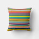Dieses Kissen mit horizontaler Linienführung ist in den Farbtönen Blau, Grün, Braun, lila, Rot, Gelb, Orange und Rosa gehalten.