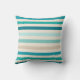 Horizontale Streifen in Lagune, Türkis, Blau, Aqua und Creme schmücken dieses Kissen für einen Strand, Küstenstreifen.