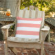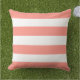 Einfach stilvolles Outdoor-Kissen-Design mit einem Muster von breiten weißen horizontalen Streifen mit korallenorange / rosa Hintergrund. Die klassische Gestaltung harmoniert mit jedem Dekor-Stil. Die Hintergrundfarbe kann geändert werden.