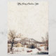 Wunderbare Vintage Malerei der feinen Kunst eines Pferde-und Sleigh-Reiters, der eine Landszene mit Bauernhäusern und einem Teich an einem schneebedeckten Wintertag, durch Durrie führt, ist auf diesem Familien-Weihnachtsbriefpapier. Bild ist das public domain wegen des abgelaufenen Copyright.