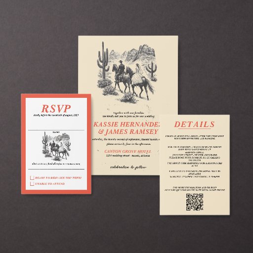 Horseback Canyon Couple mit QR Code Wedding Einladung