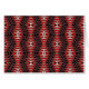 Ein ansprechendes, abstraktes geometrisches Muster mit flammähnlichen Blattformen, Dreiecken und Rautenformen in Rot, Schwarz und Weiß.