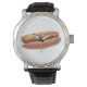 Uhr, Vintage Männeruhr mit schwarzem Lederarmband