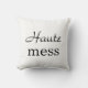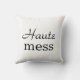 Dieses schwarz-weiße Kissen ist mit dem niedlichen Sprichwort Haute Mess vorne und hinten geschmückt und eignet sich ideal für ein Schlafzimmer, ein Wohnzimmer oder ein Wohnzimmer.