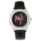 Hot Pink Black Modern Script Girls Monogram Name Armbanduhr