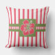 Hot Pink Hibisken mit Streifen Monogramm Kissen