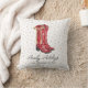 Die Kopfkissen dieser Weihnachtsbaumkissen sind mit einem Aquarell-Portrait von einem Paar roter Cowgirl-Stiefel versehen, das mit der Aufschrift "Howdy Howdy Howdy Howdy" vor einem Polka-Dot-Hintergrund versehen ist.