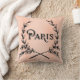 Antike französische kommerzielle Illustration mit dekorativem Kranz und Text, der PARIS liest. Schönes dekoratives Kissen im französischen Landstil. Der Hintergrund ist ein sanftes Rosa mit dem subtilen Aussehen der Textur und nur ein Hinweis auf einen antiquierenden Effekt. Das Bild ist auf der einen Seite, die andere hat einfach die schöne hellrosa Farbe und den antiquierenden Effekt. Dieses Kissen ist in zwei Größen erhältlich, dem 20" x 20" Quadrat und der Lendenbar (rechteckig), die 13 x 21 Zoll groß ist. Was für ein schönes Kissen für ein Shabby Chic oder eine Pariser Dekoration! Wir haben eine ganze Reihe von Kissen, die diese in unserem Shop ergänzen. Designs von Scarebaby Design, unterstützt durch die Zazzle-Garantie.
