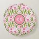 Hübsch Pink Tulip Floral Blume Blätter Monogramm Rundes Kissen