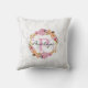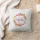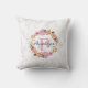 Ein Kissen mit Blumenkranz aus rosa und orangefarbenen Blume, Zweigen, Zwirnen und Blätter. Dieses digitale Bild wurde ursprünglich mit Aquarellen erstellt und ist niedlich und trendig. Der Hintergrund ist ein Bild aus elegantem weißem Marmor. Personalisieren Sie das Programm mit einem Monogramm Initial und Name.