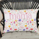 Mama Kissen in sanftem Rosa mit farbenfrohen Wildblumen-Mustern und fett-modernen Schriften. Das Design zeichnet sich durch hübsche wilde Blume mit "Mama" in verzierter Typografie. Bitte stöbern Sie in meiner Mother's Day Wildblume Collection für weitere Blumenkarten und Geschenke.