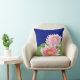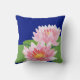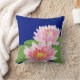 Ein schick gezogenes Kissen oder Kissen mit zwei rosa Wasserlies auf tiefblauem Hintergrund. Die Wasserlilie ist die Blume des Monats Juli und es gibt Platz, um Ihre Initialen oder Namen hinzuzufügen, wenn Sie möchten.