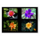 Eine Sammlung von vier hübschen Blumen, mit einem schwarzen Hintergrund und der Karte im freien Raum auf dem Innere.