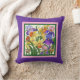 Hübsches, blumengeschmücktes Kissen, gerahmt in Rosa/Grün bemalt, auf einem lila Kissen dunkel.