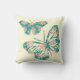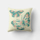Hübsche Kissen mit dekorativen rosa rosa, gemusterten Schmetterlingen auf hellen Zitronenhintergrund. (Option zum Ändern der Hintergrundfarbe)