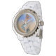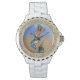 Eine Armbanduhr mit einer hübschen Meerjungfrau, die in sinnlicher Pose am Strand liegt