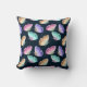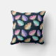 Ein Kissen mit einem schönen Muster. Aquarellschmetterlinge, in Pastellfarben, rosa, lila, blau, gelb und grün gestrichen. Dunkelblauer Aquarellhintergrund.