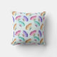 Ein Kissen mit einem schönen Muster. Aquarellschmetterlinge, in Pastellfarben, rosa, lila, blau, gelb und grün gestrichen. Ein hellblauer Aquarell mit Hellrosa.