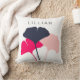 Erstellen Sie ein hübsches personalisiertes Kissen, wenn Sie einen Namen oder eine andere Nachricht in marineblauer Schrift in einem einfachen, sauberen Schriftart hinzufügen. Machen Sie eine Aussage mit fett Farben und eine saubere und einfache Grafik. Hier finden Sie Abbildungen von ginkgo Blätter in marineblau, hellrot rosa und hellkorallengefärbtes Magenta.