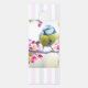 Türhänger mit einem phantastischen Foto des niedlichsten kleinen Vogels, der auf einem Ast mit rosa Blüten und grünen Blätter steht. Der Vogel hat einen blauen Kopf und einen gelben Körper mit einem sehr süßen Gesicht. Schön.