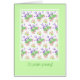 Eine sehr hübsche 75. Geburtstagskarte mit rosa Rosen, cremig weißem Mock Orange und lila Lavendel auf weißem Hintergrund mit blassgrünem Rahmen, von Judy Adamson handgemalt. Sie können die innere Nachricht personalisieren.