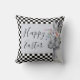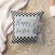 Hübsches und fantasievolles Design mit Aquarellblütenportrait mit Frühlingsfloralen und Happy Oaster Text auf schwarz-weißem Schachbretthintergrund.