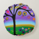 Hübscher Whimsical Tree Folk Art Generierte Kunst Rundes Kissen