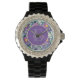 Hübsche Lila Blue Florals Monogram Watch . Das Design hat lila blaue Blumen auf einem lila Hintergrund. Diese schöne Uhr kann durch Ändern von Monogramm und Namen angepasst werden. Für weitere Anpassungen wenden Sie sich bitte an mich unter mypaperlove2021@gmail.com