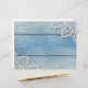 Holzpaneele aus Stall in Pastelltönen, Denim Blau mit hübschen, weißen Spitzenteilen an den Ecken. Ein perfekter Hintergrund für Babyzeitschriften oder Hochzeitsbücher. Dieses vielseitige Papier kann für alle Ihre Werke verwendet werden: Scrapbooks oder Zeitschriften, Collagen, Decodipage oder Foto-Alben. Für optimale Ergebnisse wird ein mattes, texturiertes Papier empfohlen. Andere Holz- und Spitzentechnologien sind in unserem Zazzle-Shop erhältlich.