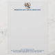 Ein Kopf des Kastanienpferds innerhalb eines Hufeisens, auf Briefpapier für Reitervereine, Vereinigungen und Geschäfte, mit dem zusammenpassenden Kleid verfügbar.