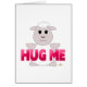 Dieses niedliche tierisch-weiße Schaf hat das Sprichwort "Hug Me" in rosa Schrift geschrieben.