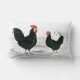 Pillow mit Vintagem Bild einer schwarzen Henne und des Hahns. Rückseite des Kissens ist ein Schwarzweiss-Karo.
