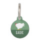 Dieses Tier-ID-Tag weist ein hübsches Hühnerdesign auf grünem Hintergrund auf, mit Platz für den Namen eines Tieres. Es ist eine niedliche und passende Wahl für einen Hähnchenhalter im Hinterhof oder für jeden, der eine Vorliebe für Nutztiere hat, und bietet eine spielerische und personalisierte Möglichkeit, die Sicherheit seines gefiederten Freundes zu gewährleisten.