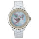 Dies ist eine einzigartige "Eine von einer Art" Hummingbird und Blume Women's Watch! Es verfügt über einen Adorable Hummingbird Sipping Nectar aus schönen Pink & Purple Blumen auf rosa und Lila Cloud Background! Originelle Kunstmalerei des Künstlers Kerry Miller.
