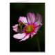Hummeln befindet sich auf einer hübsch rosa Blume mit rosa Kosmos und grünem Hintergrund.