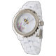 Weiße Damen Email Strassuhr