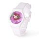 Uhr, Kinderuhr aus Edelstahluhr mit lila Lederarmband