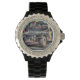 Uhr, Vintage Männeruhr mit schwarzem Lederarmband