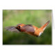 Ein helles orangefarbenes Mädchen Rufous Hummingbird schwingt im Flug.